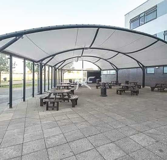 Kanopi membran memiliki tampilan unik, futuristik, dan estetik. Cocok untuk mempercantik area komersial maupun residensial seperti taman, carport, kafe, mall, atau stadion.